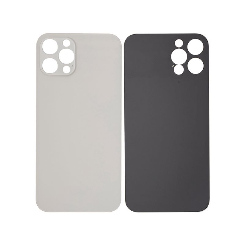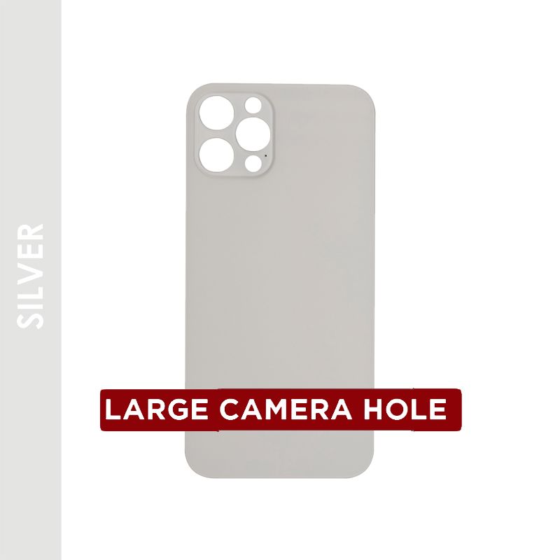 Reemplazo de vidrio de cubierta trasera (agujero de cámara grande) de alta calidad para iPhone 12 Pro (sin logotipo) (plateado).